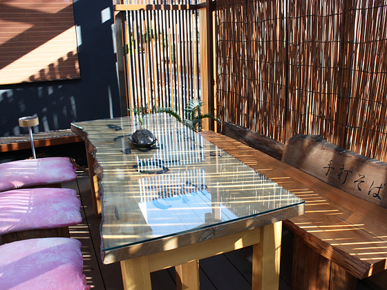 屋外にテラス席があり、そこではペットと一緒にお食事ができます。 席の周りは格子で囲まれており、日当りもよく外からはテラス席が見えにくくなっておりますので、のんびりとお食事を楽しむことができます。
